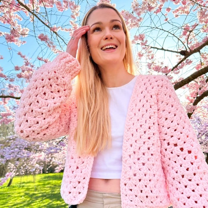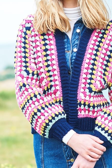 The Hexagon Cardigan uses a magic circle, chain and uk treble crochet stitches. You’ll also learn how to change colours. You can change colours every row, or every few rows, to create a colourful and unique project.